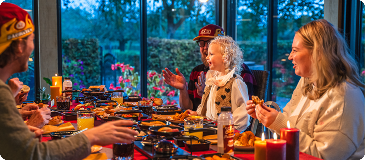 Pakjesavond is pas écht compleet als er samen gegeten wordt. Met gourmetten vier je samen heerlijk en gezellig familiefeest – iedereen bakt zijn eigen favorieten terwijl de cadeaus uitgepakt worden.